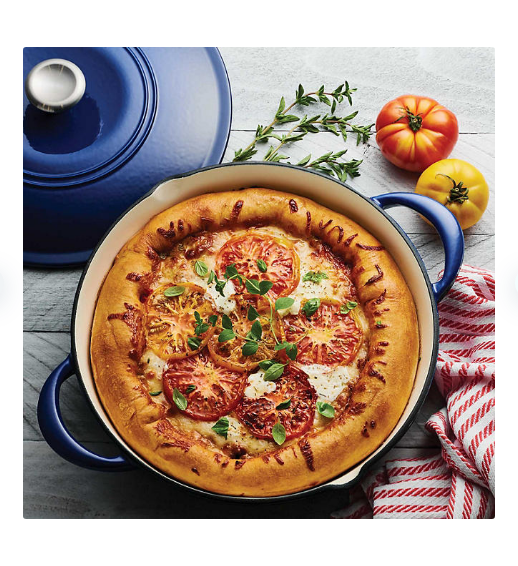 - Cast iron lid locks in moisture and flavors for more delicious dishes